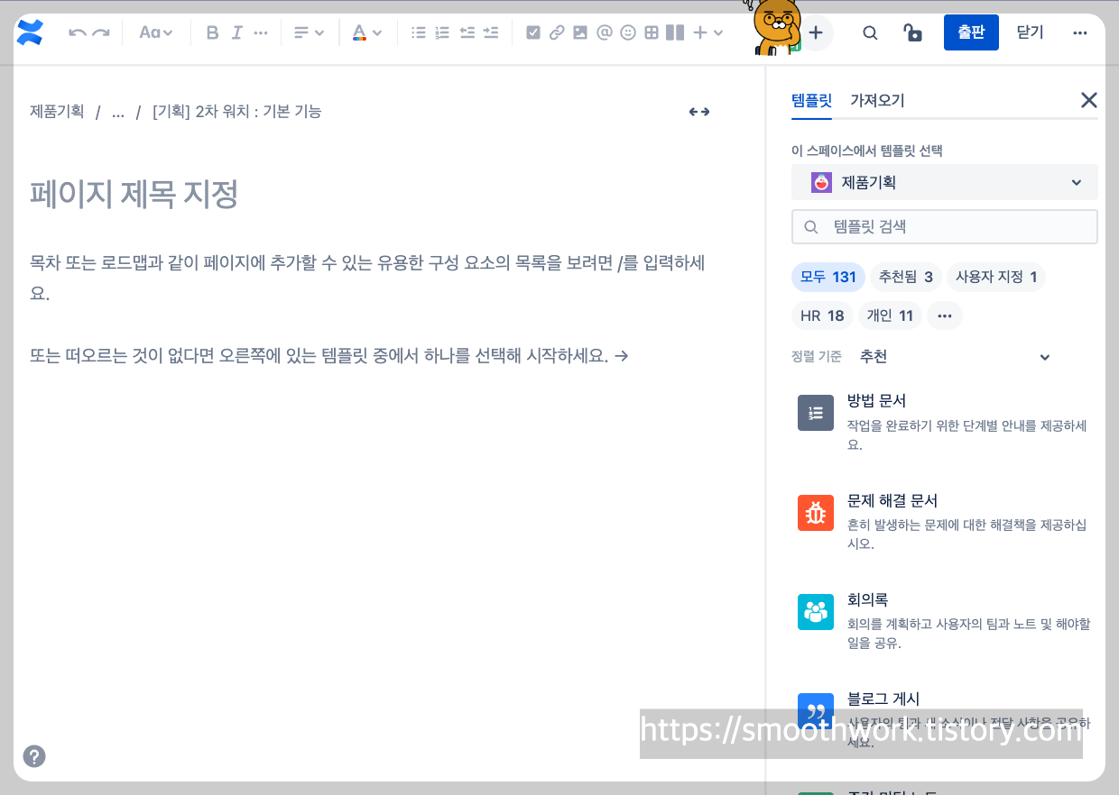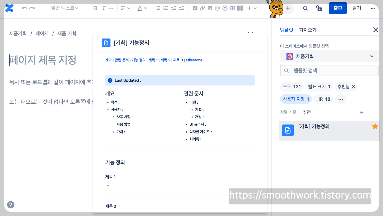 이럴 때 활용하기 좋은 것이 컨플루언스의 템플릿 기능입니다.