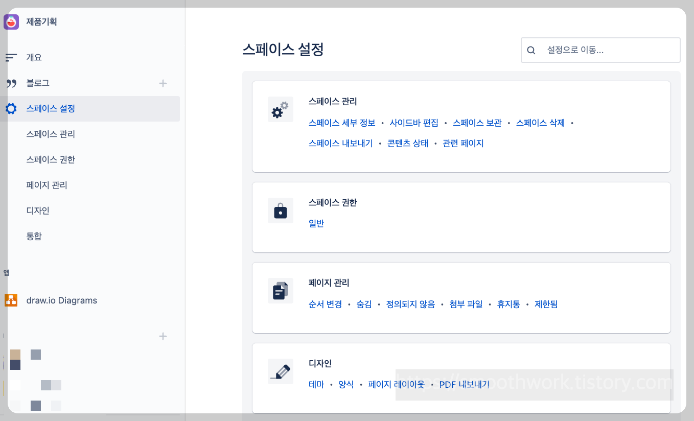 양식을 사용하고 싶은 스페이스에 들어가서 스페이스 설정 메뉴로 진입합니다.
