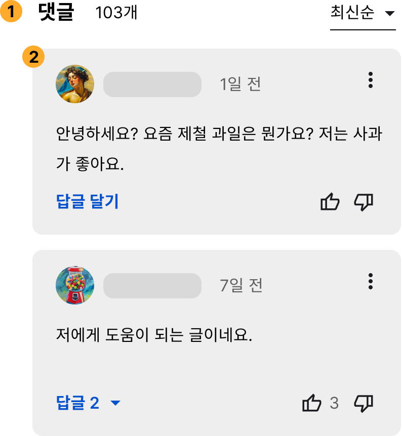 이렇게 해서 아주 간단하게, 댓글 UI의 구성 요소들을 살펴보았습니다.