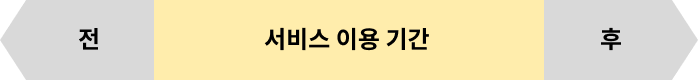서비스 이용 기간을 크게 구분해 보면 서비스 이용 기간(노란색)과 그 전, 후의 기간으로 나눌 수 있습니다.