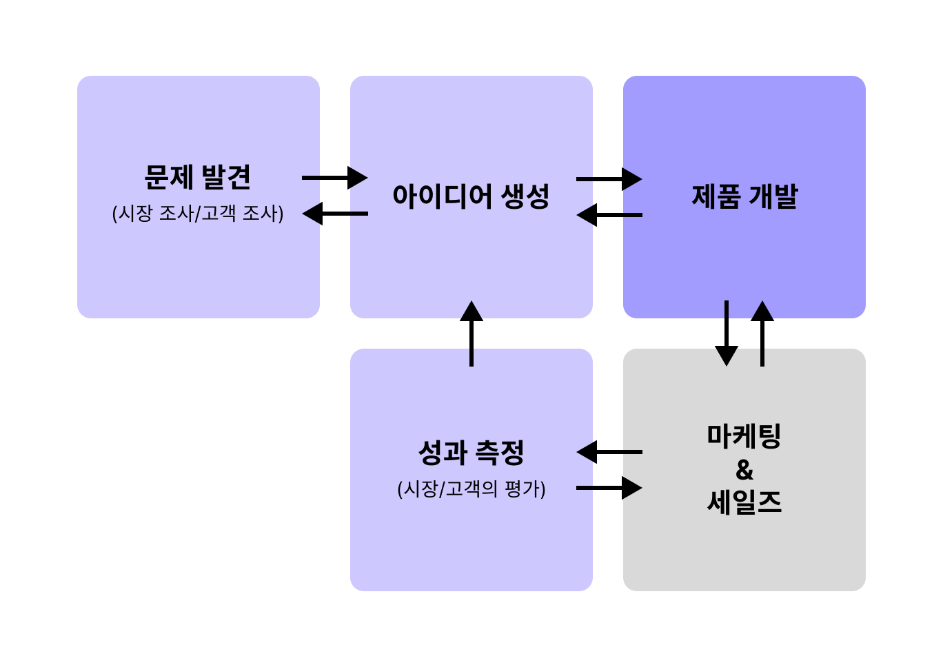 결국 1~5단계에 걸친 제품 개발 프로세스는 계속 반복되어야 합니다.