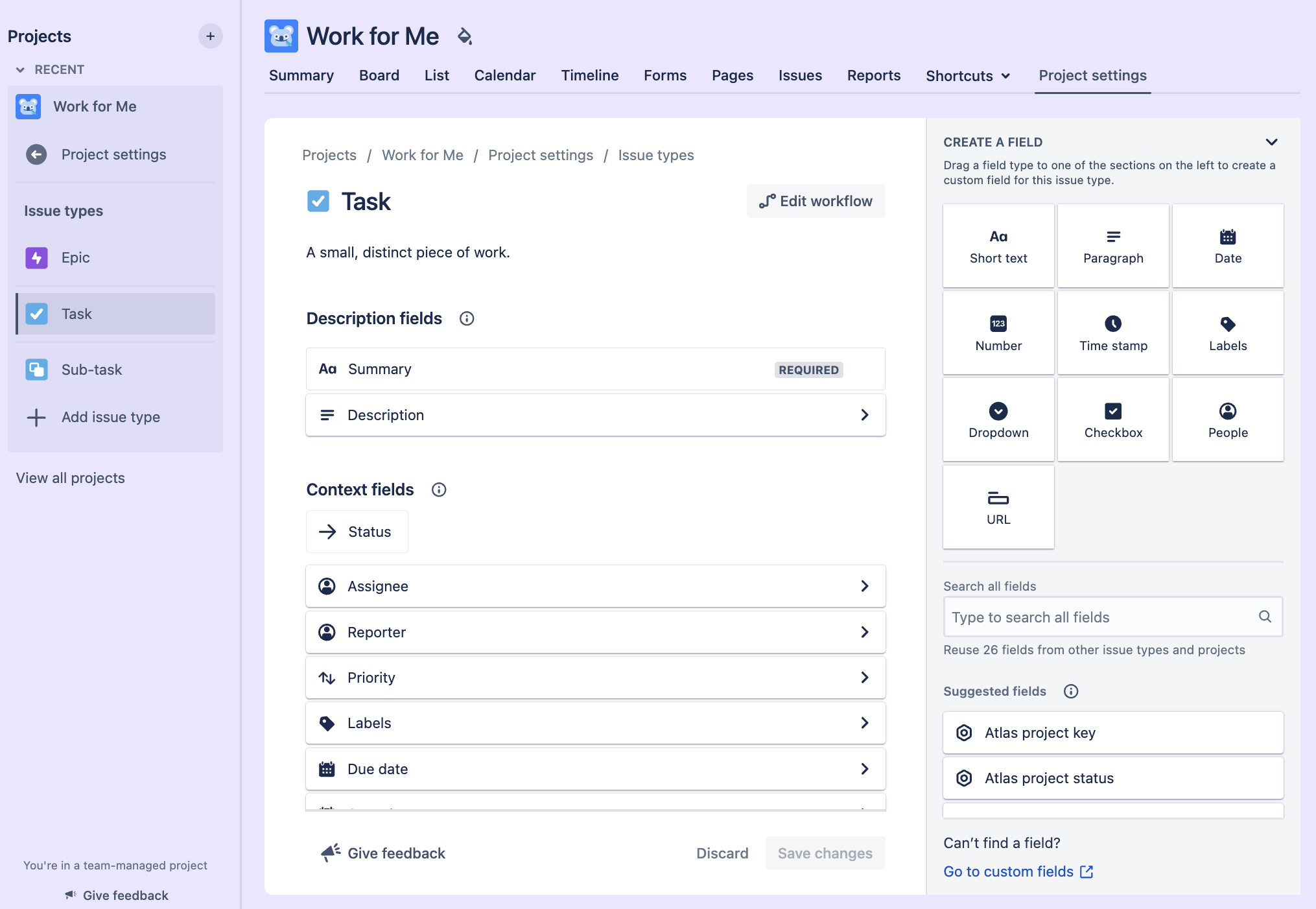 Task라는 이슈 타입에서 템플릿을 만드는 화면입니다.