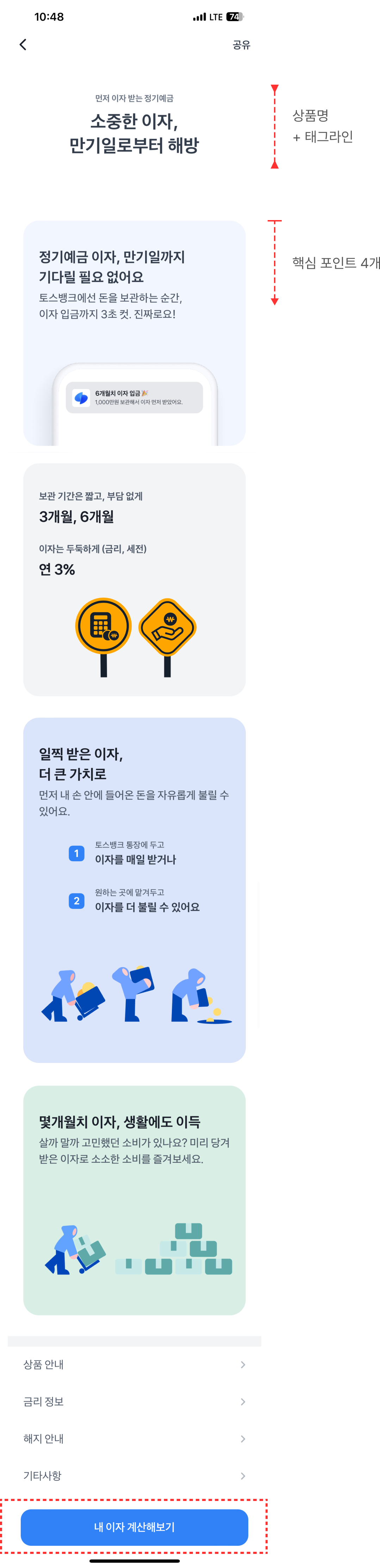 토스 예금 상세 페이지의 인사이트를 정리해 보자면 다음과 같습니다.