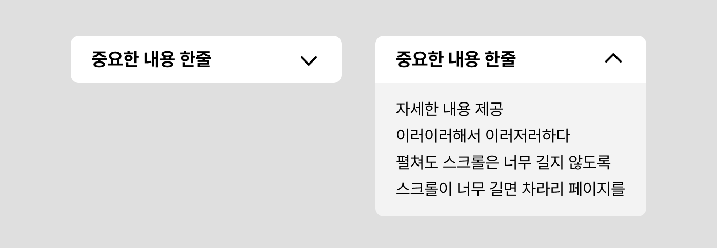 그러므로 상세 내용의 분량이 너무 많은 경우 아코디언 UI보다는