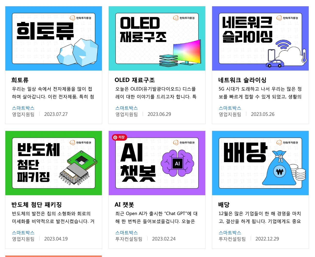 오늘은 카드 뉴스 형태로 금융 지식을 전달하는 한화투자증권의 <스마트박스>를 알아보겠습니다.