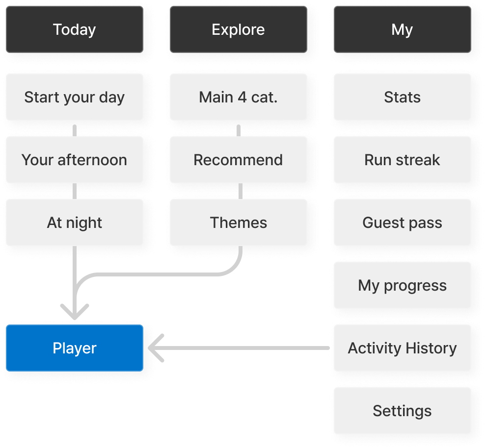 화면을 살펴보기에 앞서, 헤드스페이스 앱의 정보가 어떤 구조를 이루고 있는지 살펴보겠습니다.