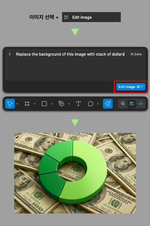 - Figma AI 메뉴에서 'Edit image' 버튼을 선택한 뒤