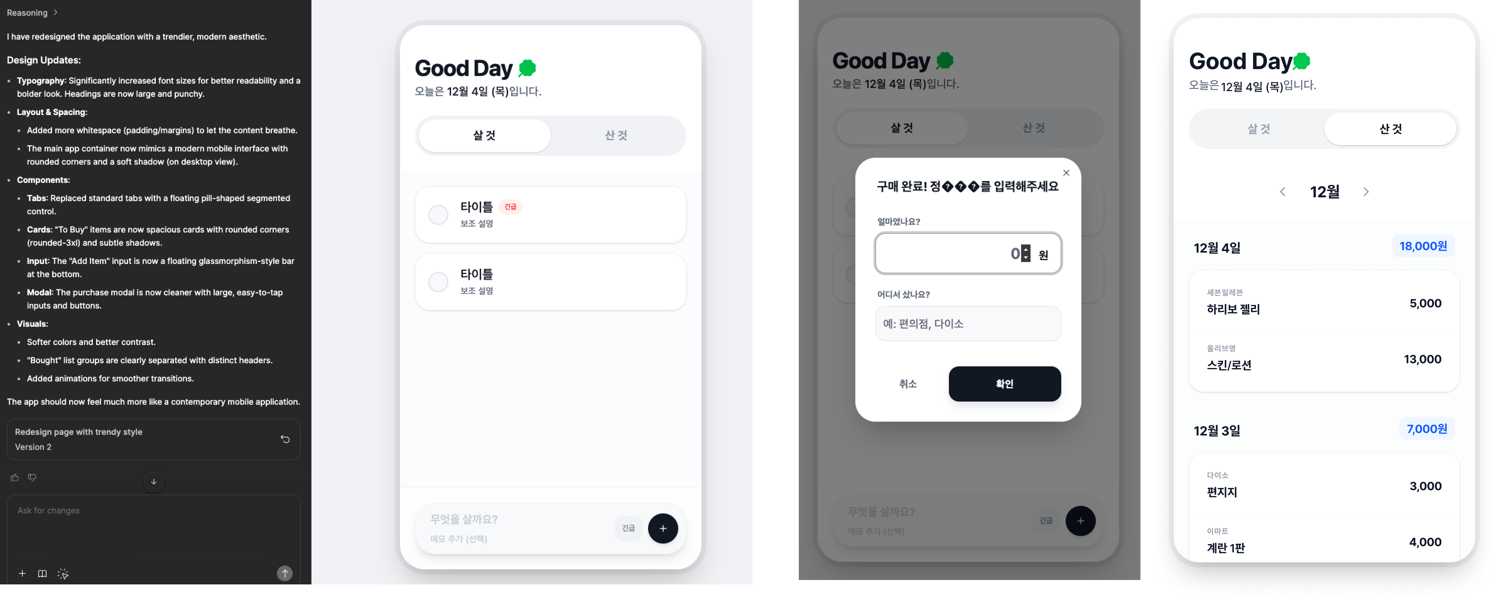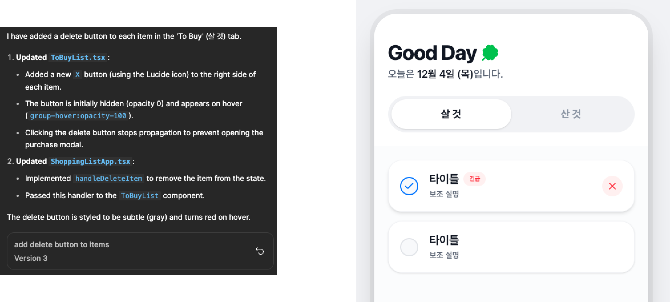 Figma Make로 쇼핑리스트를 만들어보며 느낀 점은 다음과 같습니다.